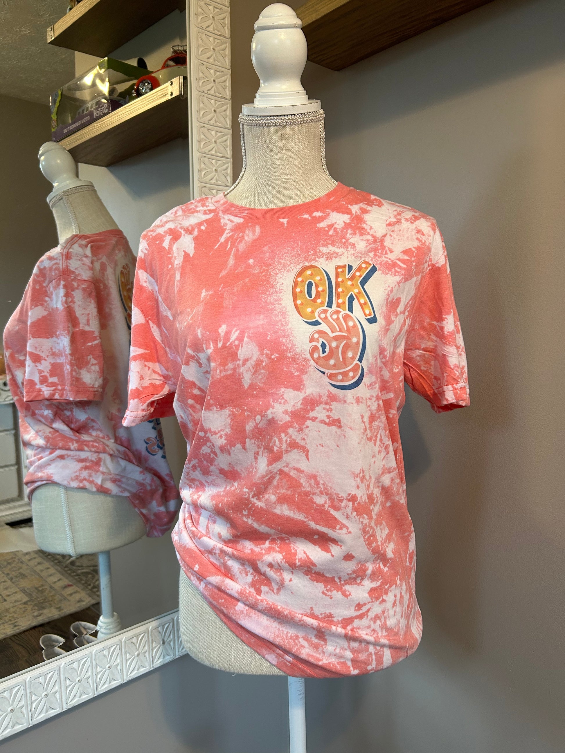 Introducing our trendy Pink bleached T-shirt that is perfect for both fashion and comfort. This T-shirt has been bleached to give it a unique and attractive look that is sure to turn heads. The front of the shirt features a simple yet impactful "OK" design that delivers a strong and confident message. On the back of the shirt, the saying "it's Okay to make mistakes" is printed in bold and eye-catching font, reminding you to embrace your flaws while striving for perfection. This T-shirt is made from high-quality and soft cotton material, ensuring maximum comfort and durability. It's perfect for casual outings, running errands, or just lounging at home. Don't hesitate to add this Pink bleached T-shirt to your wardrobe today and effortlessly showcase your stylish personality.
