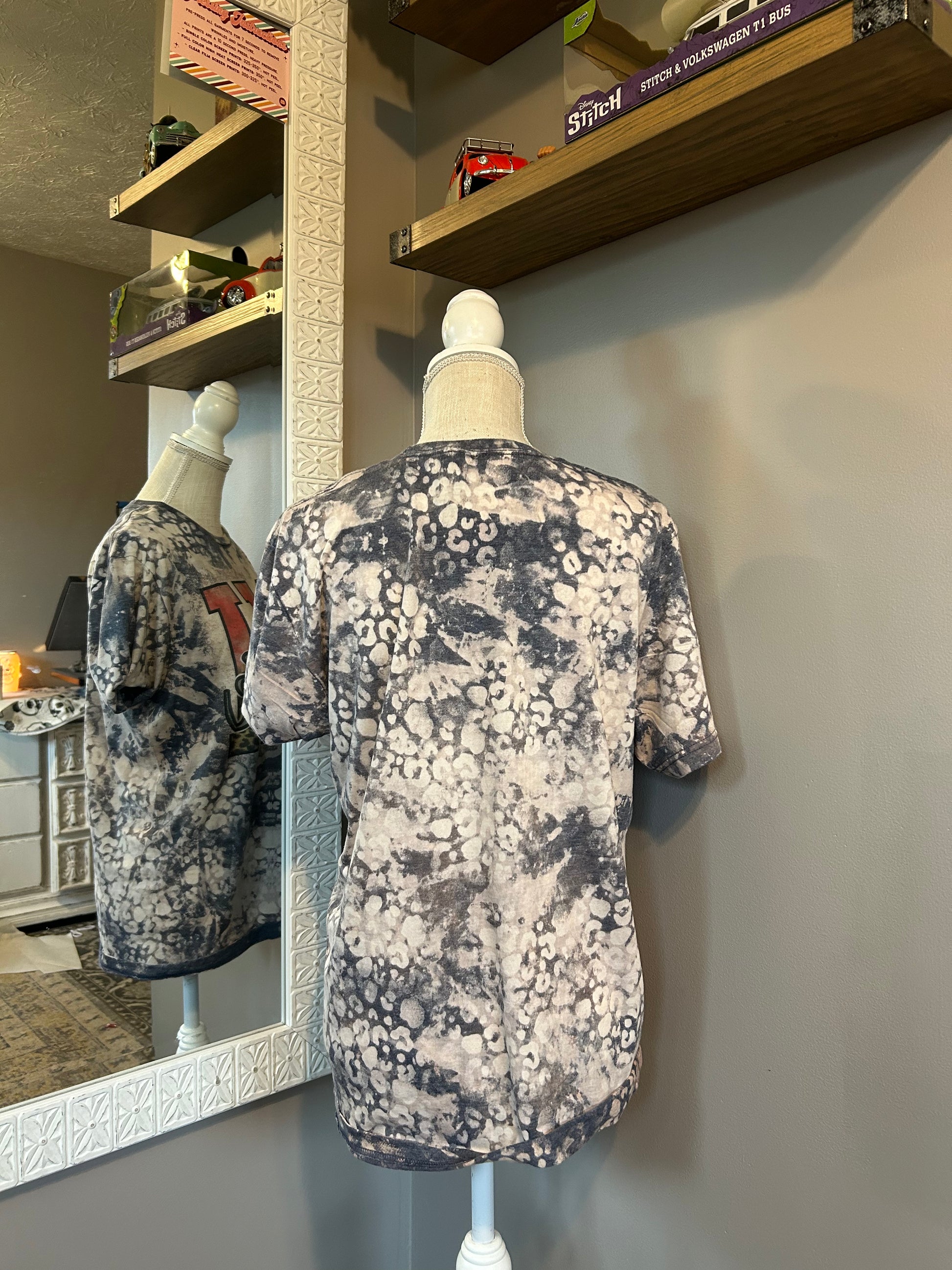 This Grey bleached t-shirt is a unique and eye-catching piece that will make you stand out from the crowd. The shirt features an Ohio State logo in bold lettering that is sure to show your pride for your favorite team. The cheetah print Bleached all over the shirt adds a touch of wildness and edginess to the overall look. The bleach effect also gives the shirt a cool and vintage vibe that can't be found anywhere else. The t-shirt itself is made of comfortable and breathable materials, perfect for long days out and about. This Ohio State Grey bleached t-shirt is a must-have for any fan looking to add some fierce fashion to their wardrobe!