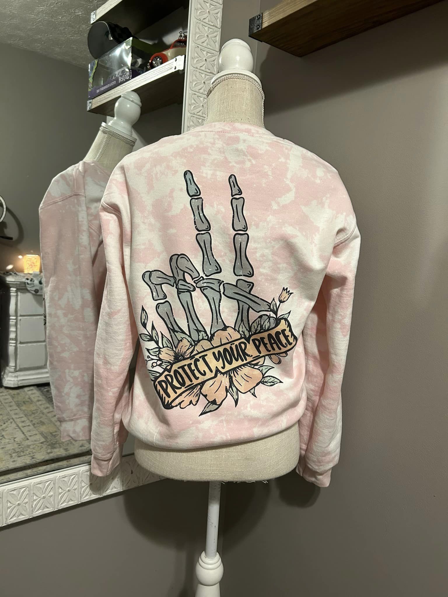 This ultra-soft crewneck sweatshirt is the perfect way to stay cozy and stylish this season. Featuring a stunning pink bleach effect that creates a unique, one-of-a-kind look, this sweatshirt is sure to turn heads. Printed across the front in bold, eye-catching letters is the phrase "Protect Your Energy", a powerful reminder to prioritize your mental and emotional well-being.